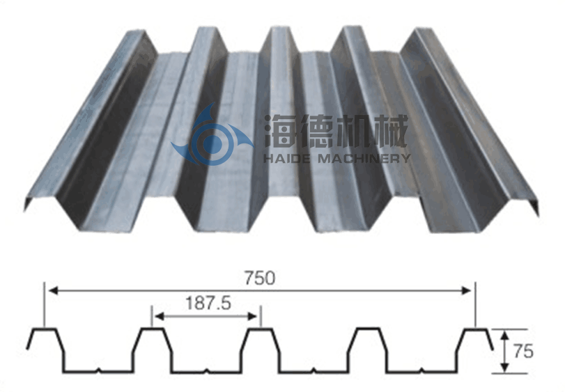 该机生产的楼承钢板,用于楼层楼面板,具有波峰高、强度大等特点,而且生产自动化程度高,成本低廉。